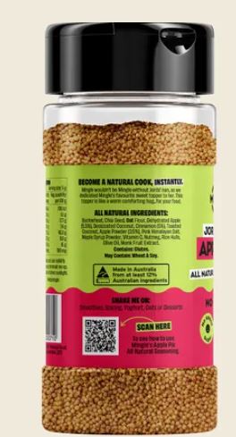Ingredients - Buckwheat, Chia Seed, Oat Flour, Dehydrated Apple (5.5%), Desiccated Coconut, Cinnamon (5%), Toasted Coconut, Apple Powder (3.5%), Pink Himalayan Salt, Maple Syrup Powder, Vitamin C, Nutmeg, Rice Hulls, Olive Oil, Natural Sweetener (Monk Fruit Extract).